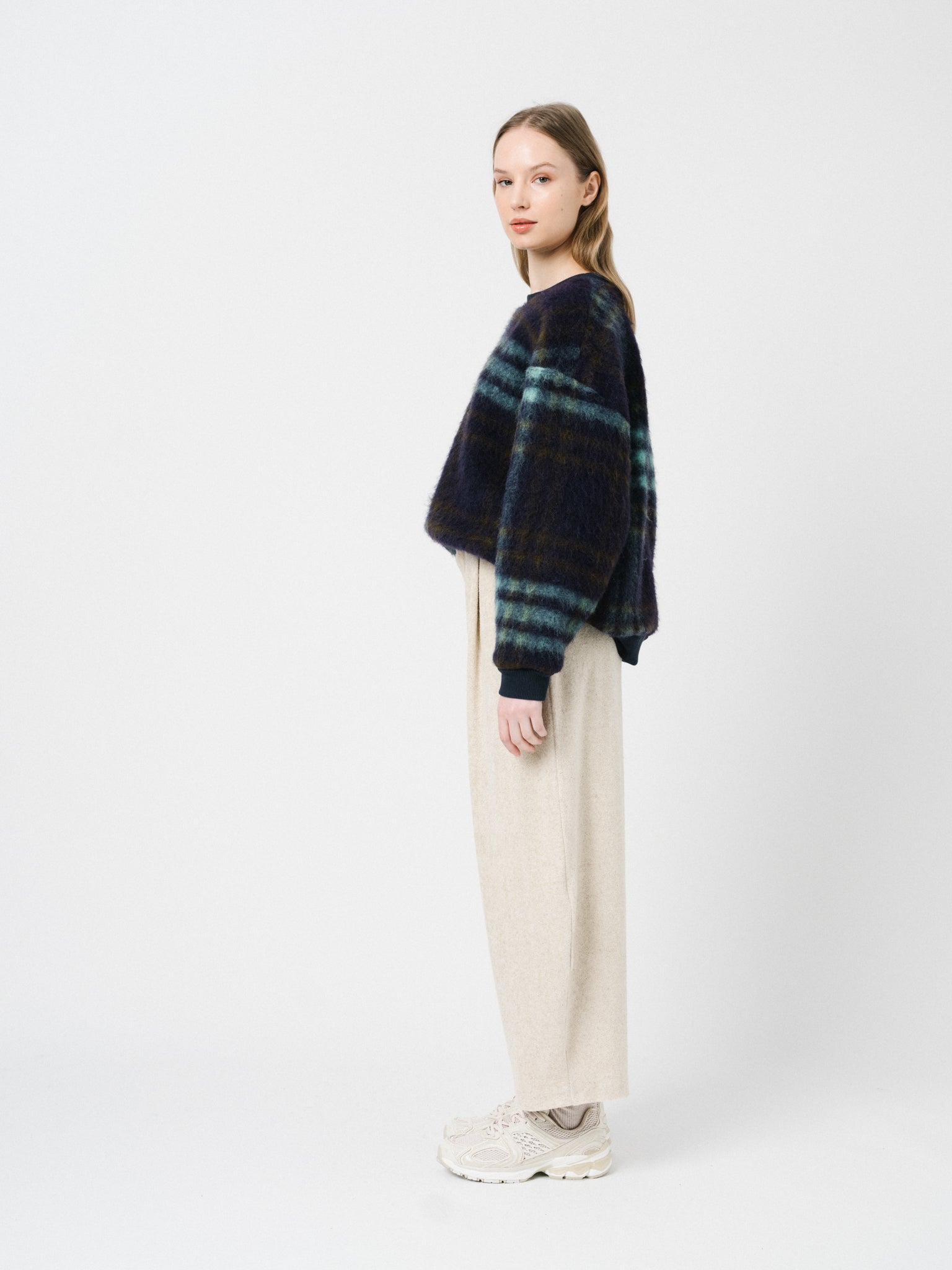 Sudadera oversize. Escote, puños y cintura rematada con tejido elástico.