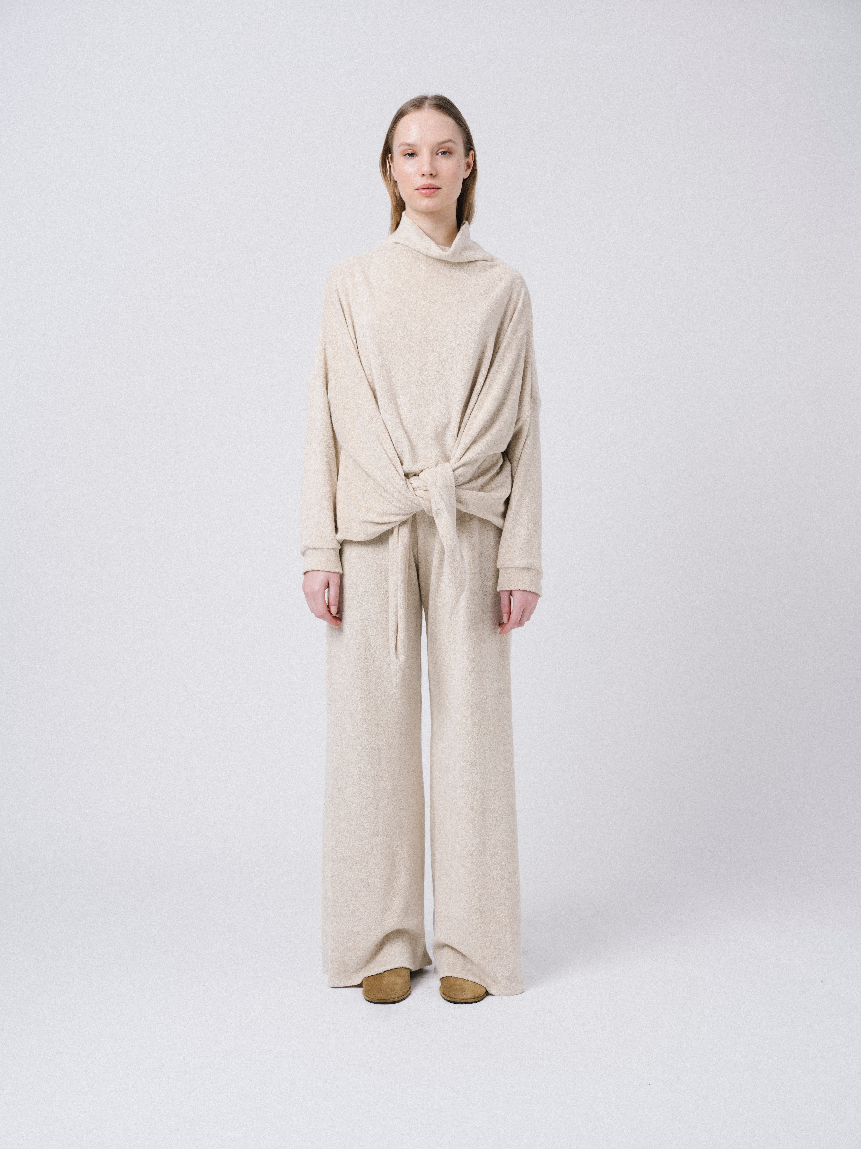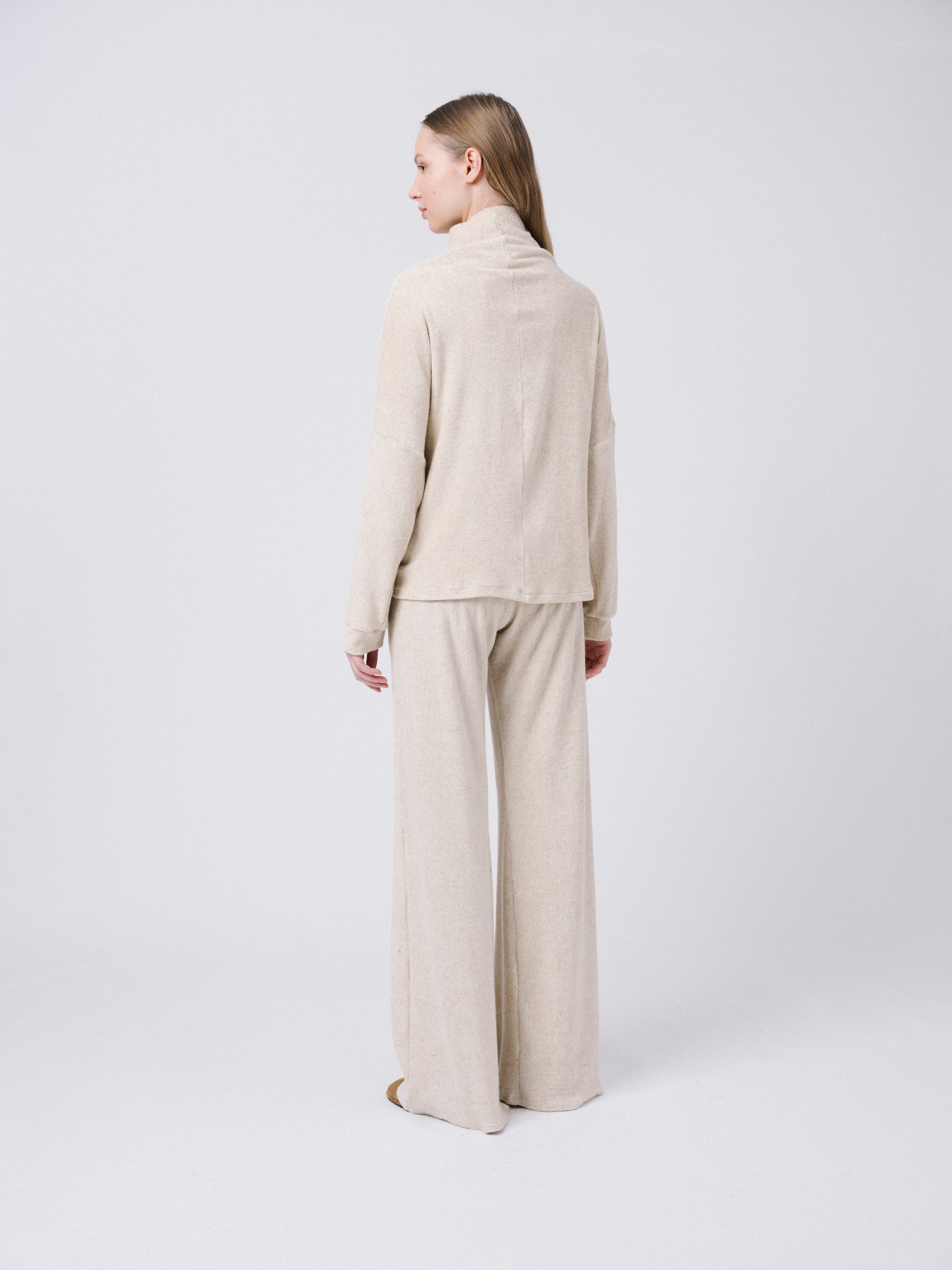 Top de cuello vuelto y manga larga con detalle de lazada en el delantero. Confeccionado en tejido de punto muy agradable.