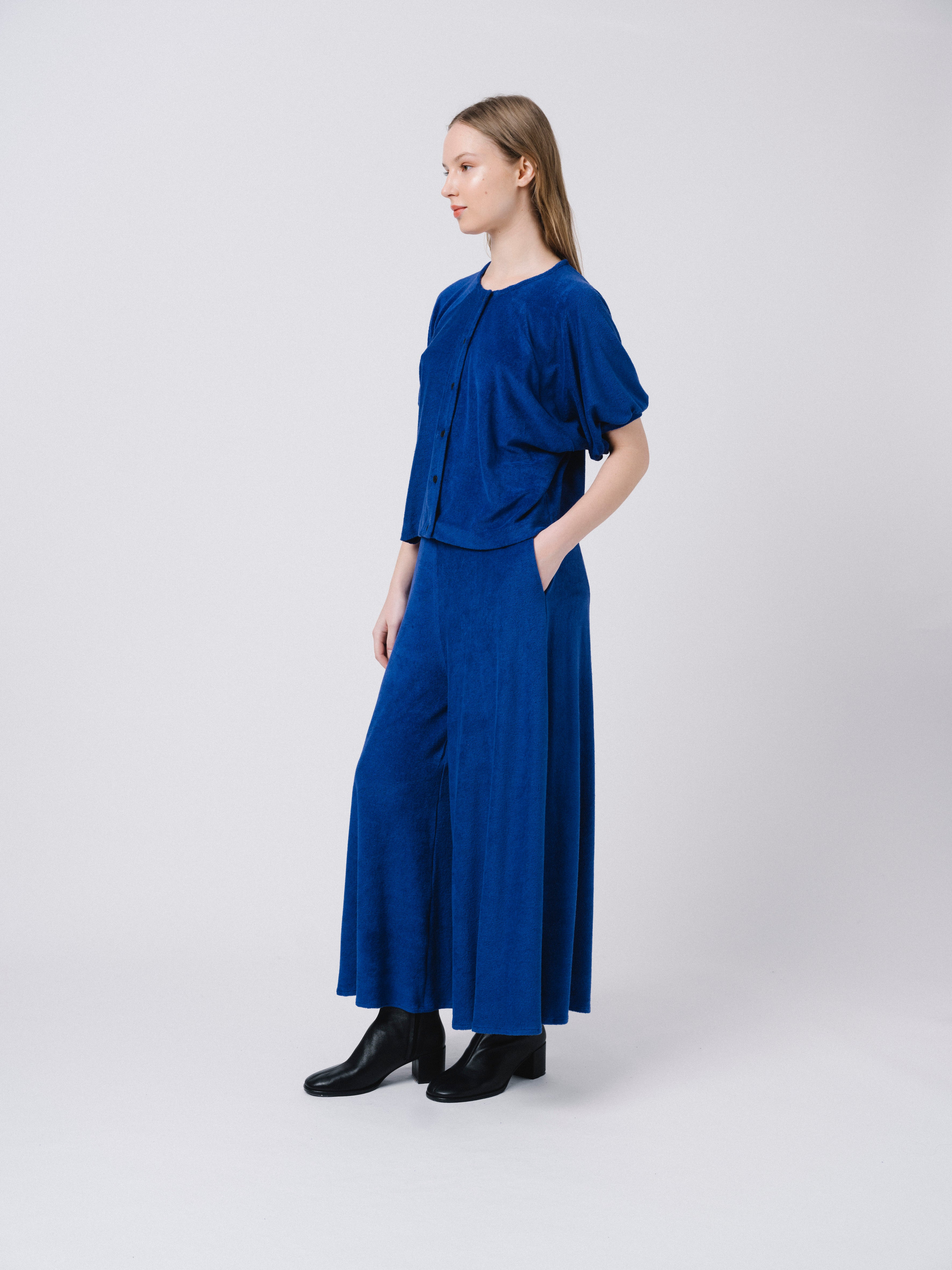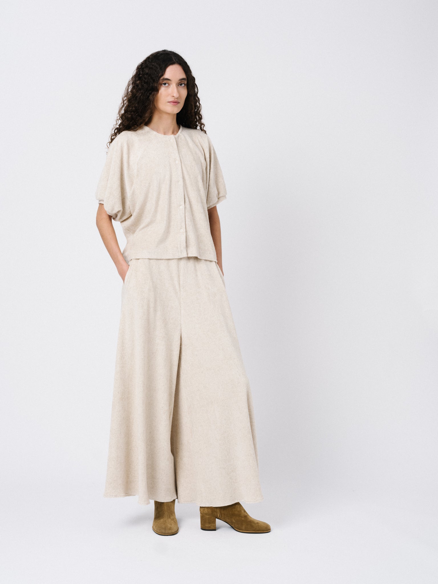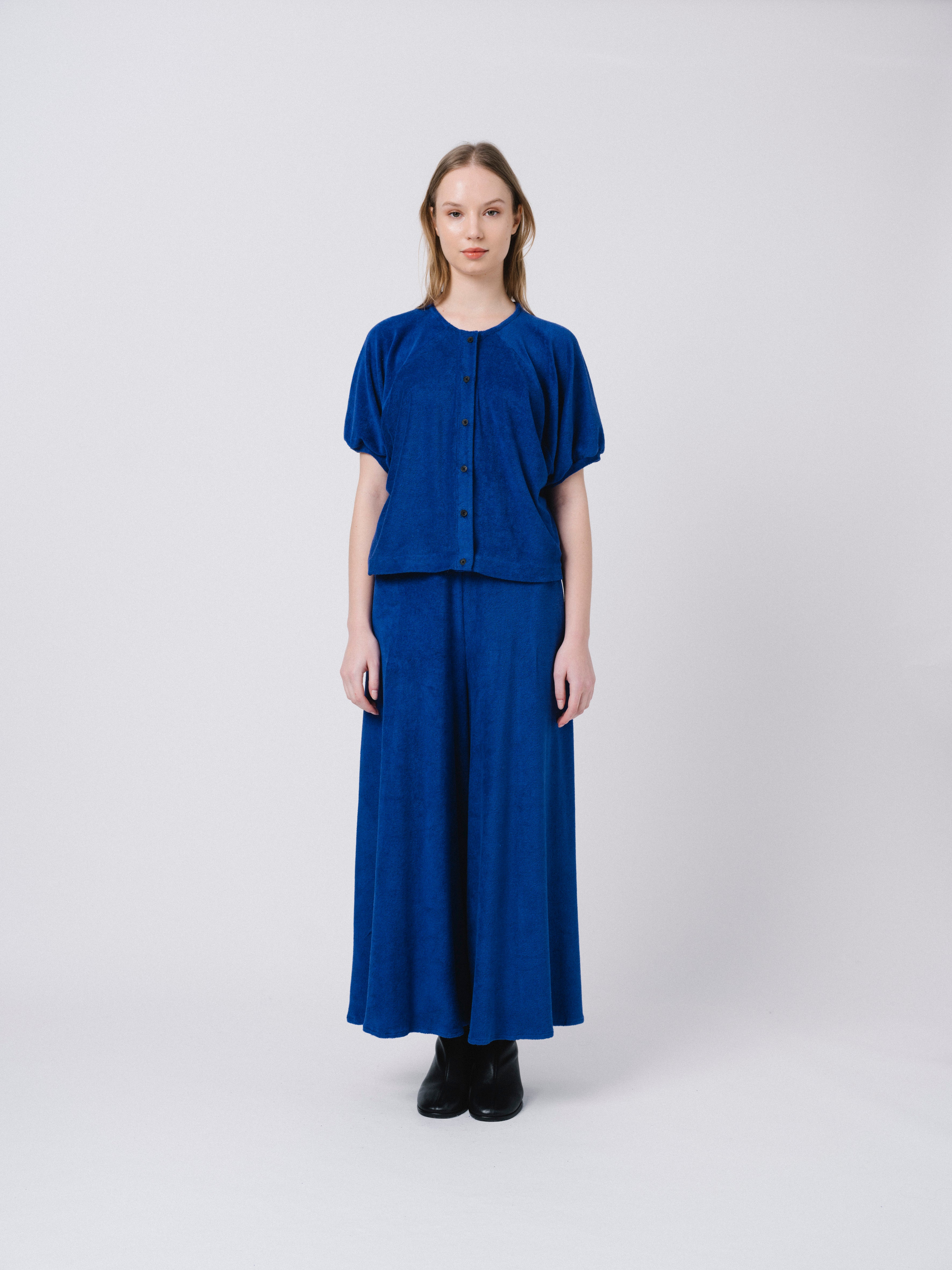 Top de manga corta y cierre con botonadura central. Manga raglán y escote redondo. Confeccionado en tejido de punto.